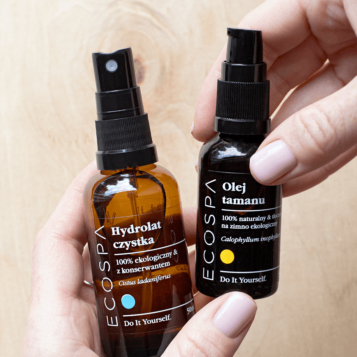 Naturalna pielęgnacja to także delikatna tonizacja skóry, która przywraca umytej skórze optymalne pH. Doskonałą bazą dla naturalnych toników są hydrolaty. W kolejnym kroku możesz sięgnąć po serum dopasowane do potrzeb Twojej skóry, np. na bazie kwasu hialuronowego lub olejowe. Na koniec zastosuj krem – w ECOSPA znajdziesz mnóstwo przepisów na naturalne kremy dla każdego typu cery. Nie zapominaj o ochronie przeciwsłonecznej!