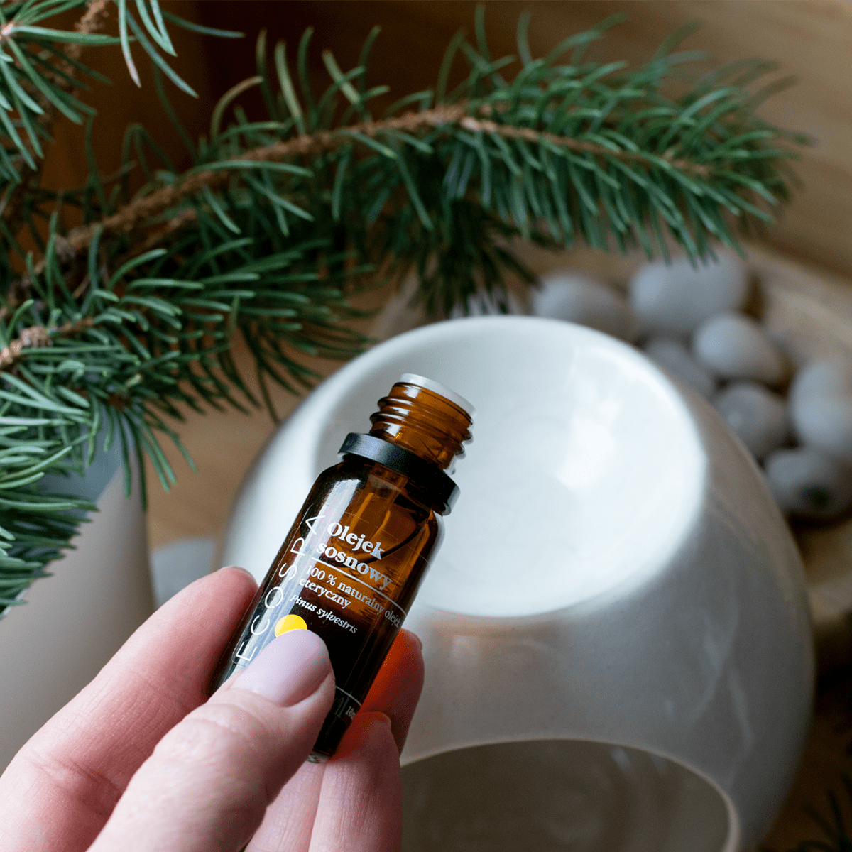 Naturalny olejek sosnowy jest jednym z częściej stosowanych olejków do inhalacji. Można wykorzystać go do aromaterapii z użyciem kominka lub dyfuzora, ponadto olejek sosnowy jest dodawany do tart zapachowych. Przy przeziębieniu warto zmieszać kilka kropli tego olejku z wybranym olejem i wlać mieszankę do rozgrzewającej kąpieli. Sprawdź, jakie olejki eteryczne na przeziębienie działają najlepiej – olejek sosnowy jest jednym z nich!